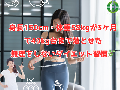 身長150cm・体重58kgだった50代女性が、3ヶ月で49kg台まで痩せることができた理由です。